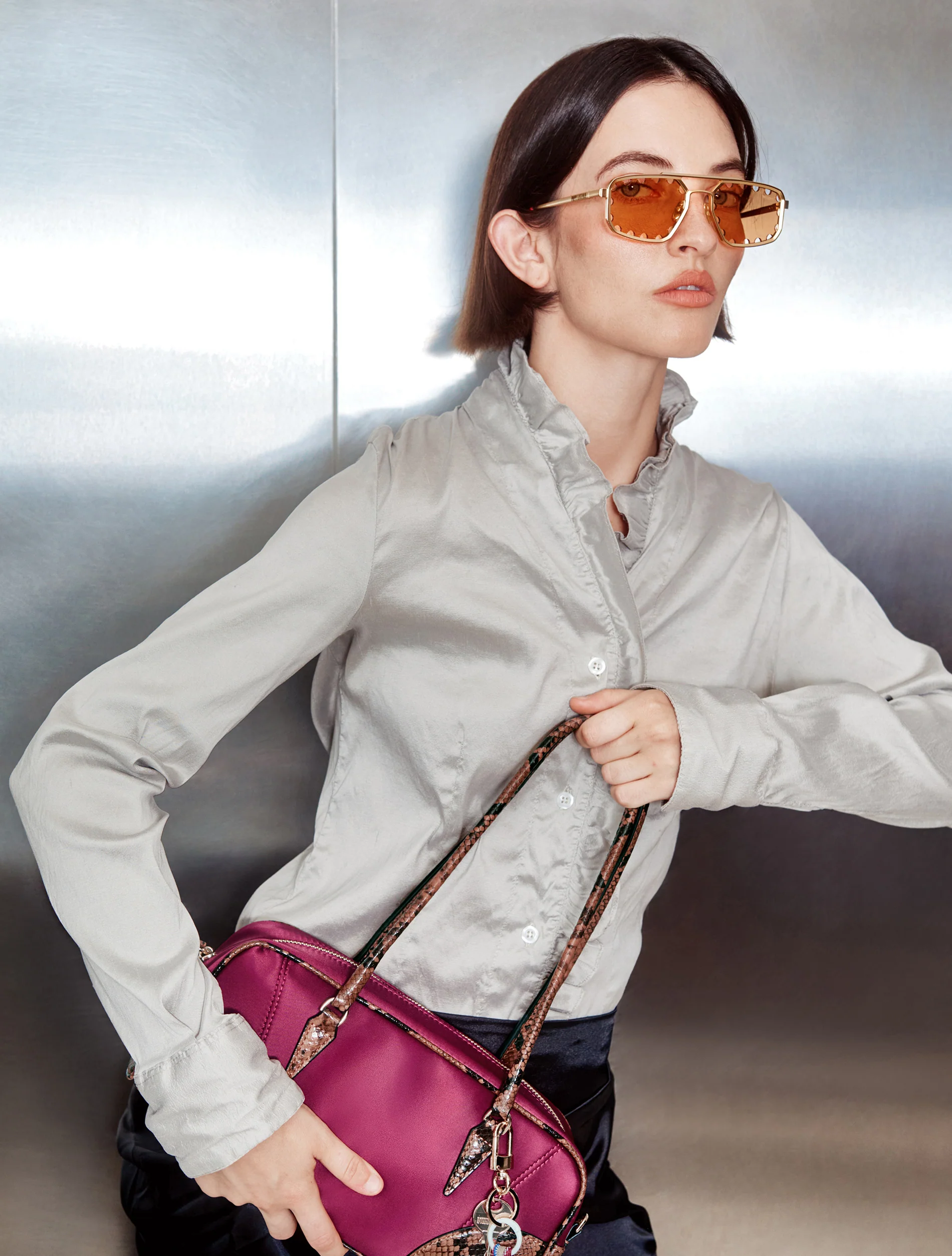 The Caspian is a modern aviator with a brushed metal frame and unique cut-out lens detail. Flexible hinges provide a comfortable, adaptable fit, making it a great unisex style. Finished with contrasting red temple tips and a CAT 1 lens.