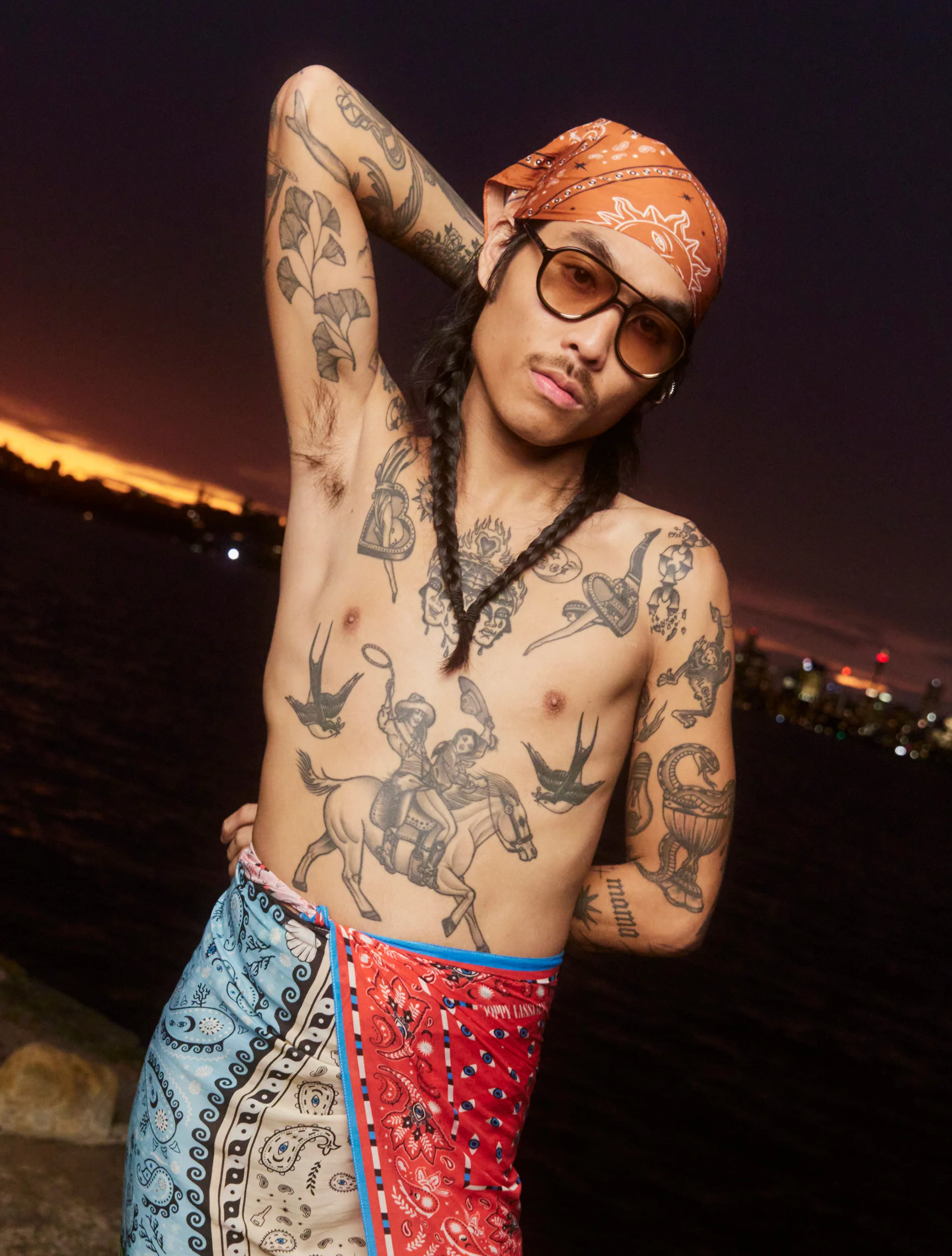 This lightweight aviator features a inner gold metal frame paired with a black acetate and brown/grey gradient CAT 1 UV-protected lenses.